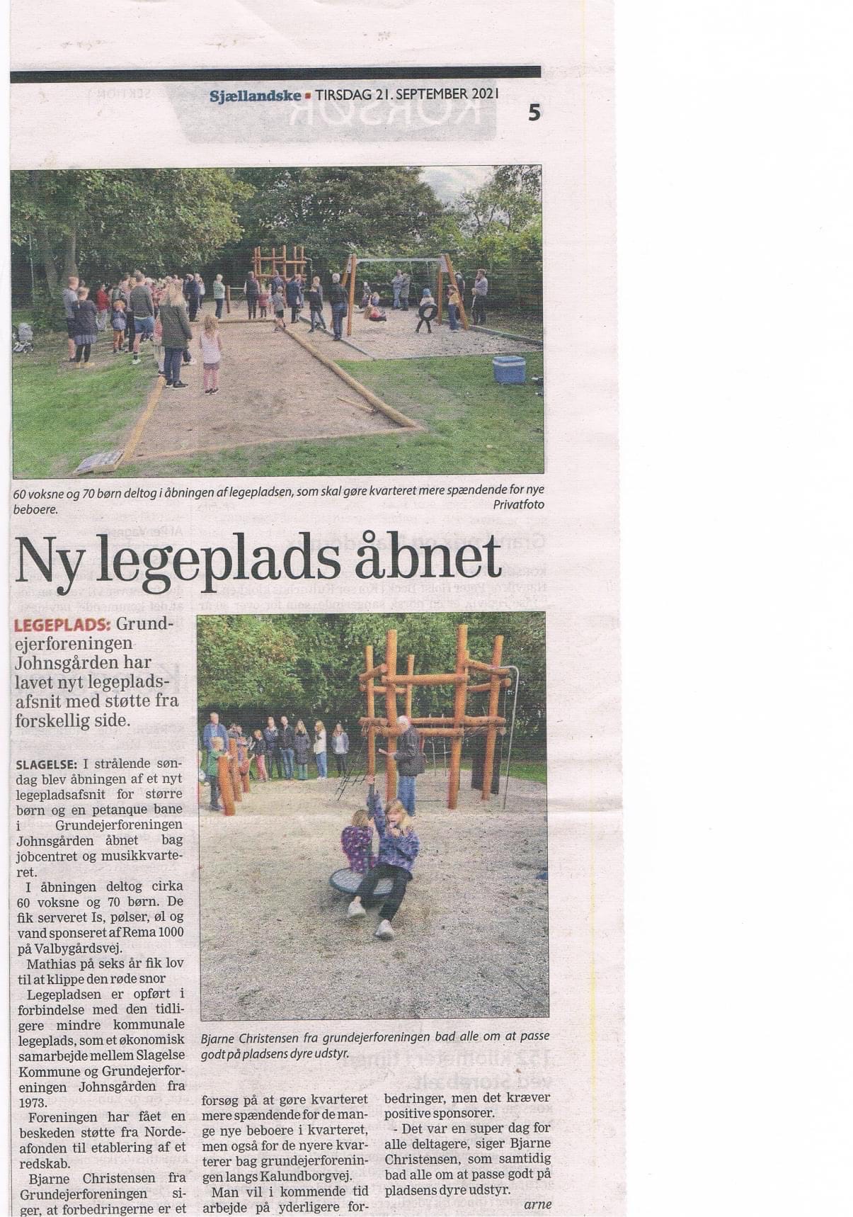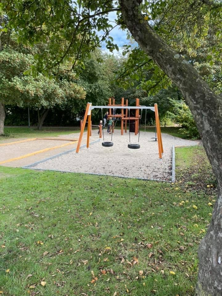 Småbørnslegeplads bag jobcentret på Kalundborgvej i Slagelse er udvidet med finansiering af grundejerforeningen og Slagelse Kommune, samt lille bidrag fra Nordea Bank.